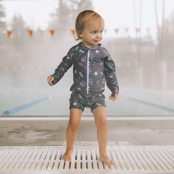 Full Zipper Sunsuit - Sidewalk Chalk