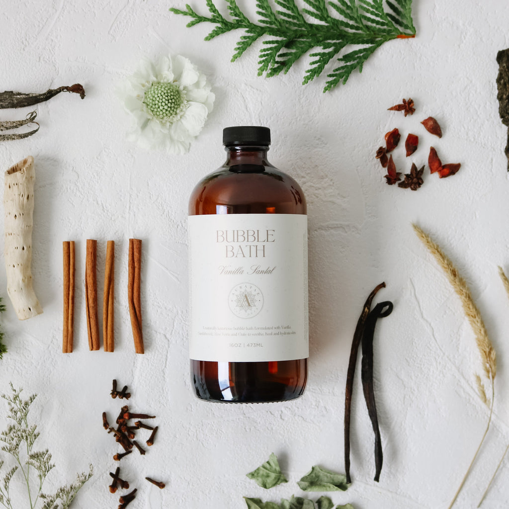 Luxurious bubble bath formulated with aloe and oats to help soothe, heal and hydrate skin. 100% Non toxic and cruelty free. White Grapefruit, Garden Mint, Eucalyptus and Bergamot.